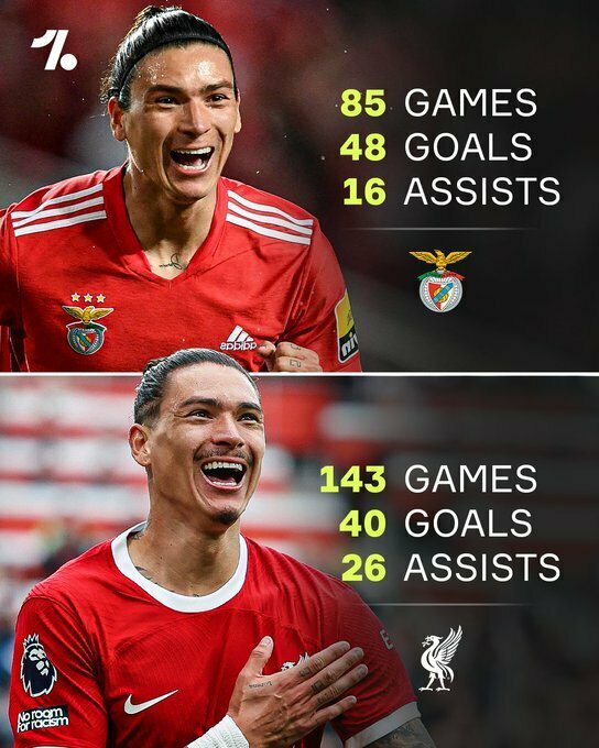 Самые яркие страницы карьеры уругвайца в Европе связаны с «Бенфикой» и самим «Ливерпулем». В составе «орлов» Нуньес провел 85 матчей, забил 48 голов и отдал 16 результативных передач.