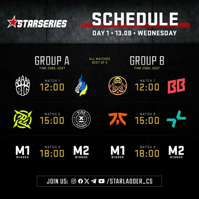 Турнирный оператор StarLadder опубликовал итоги жеребьевки группового этапа европейских отборов к ивенту StarSeries Fall 2025 по CS2. Passion UA сыграют в группе «А» с BIG, а TEAM NEXT LEVEL (TNL) оказались в группе «С», где их первым соперником будут OG.