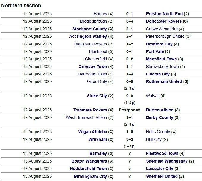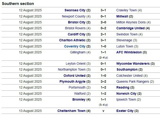 Кубок английской лиги. 1/64 финала, 12 августа 2025