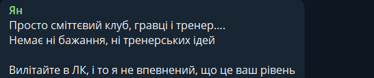 Ян: Просто мусорный клуб, игроки и тренер. Нет ни желания, ни тренерских идей. Вылетайте в ЛК, и я не уверен, что это ваш уровень.