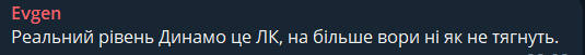 Evgen: Реальный уровень Динамо это ЛК, на большее они ни как не тянут.
