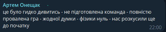 Артем Онещак: Это было противно смотреть – неподготовленная команда – полностью проваленная игра – никакой мысли – физики ноль – нас раскусили еще до начала.