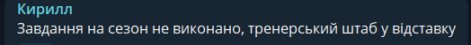 Кирилл: Задание на сезон не выполнено, тренерский штаб в отставку.