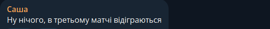 Саша: Ну ничего, в третьем матче отыгрываются.
