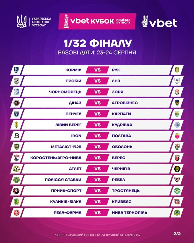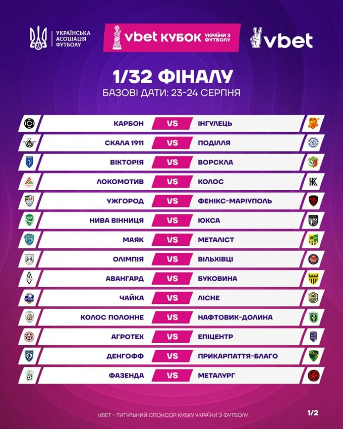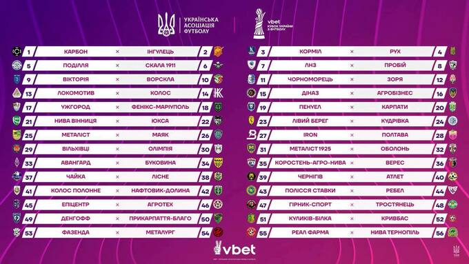 Результаты жеребьевки 1/32 финала Кубка Украины