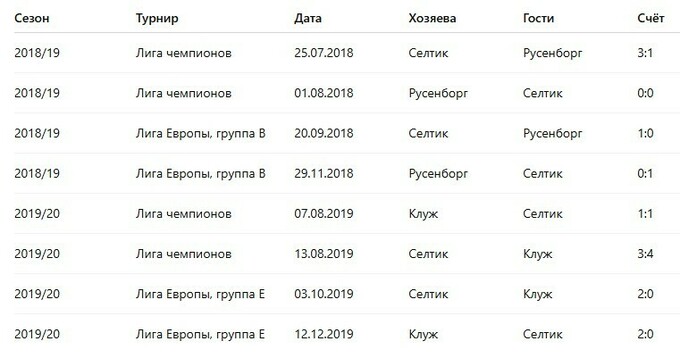 В сезонах 2018/19 и 2019/20 в еврокубках произошли редкие случаи, когда одни и те же клубы встречались друг с другом в разных турнирах в течение одного сезона. Причем каждый раз был задействован шотландский Селтик – это уникальный случай.
