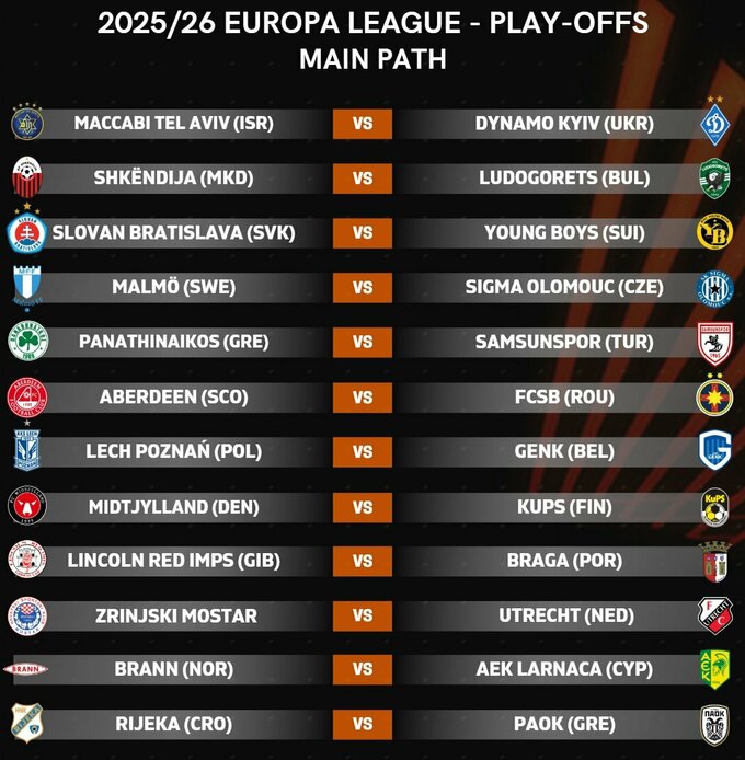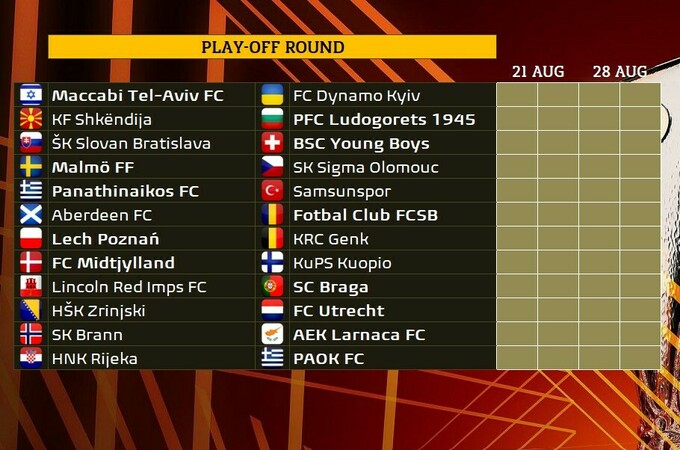 В Q4 Лиги Европы будет участвовать киевское Динамо, которое вылетело из Лиги чемпионов после поражения от Пафоса (0:1, 0:2). Соперником столичного клуба станет Маккаби Тель-Авив. Матчи пройдут 17 и 24 августа.