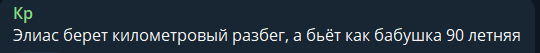 Кр: Элиас берет километровый разбег, а бьёт как бабушка 90-летняя.