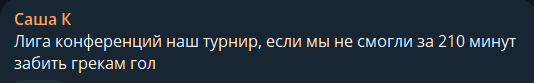 Саша К: Лига конференций наш турнир, если мы не смогли за 210 минут забить грекам гол.