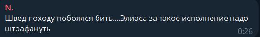 N.: Швед походу побоялся бить....Элиаса за такое исполнение надо штрафануть.
