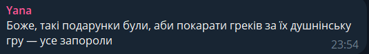 Yana: Боже, такие подарки были, чтобы наказать греков за их душнинскую игру – все запороли.