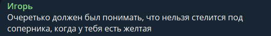 Игорь: Очеретько должен был понимать, что нельзя стелиться под соперника, когда у тебя есть желтая.