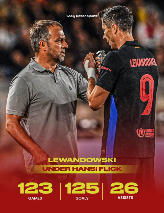 Кроме «Барселоны», Левандовски работал с Фликом два сезона в мюнхенской «Баварии». За этот период они провели вместе 71 матч, в которых поляк отличился 83 забитыми мячами и 22 ассистами.