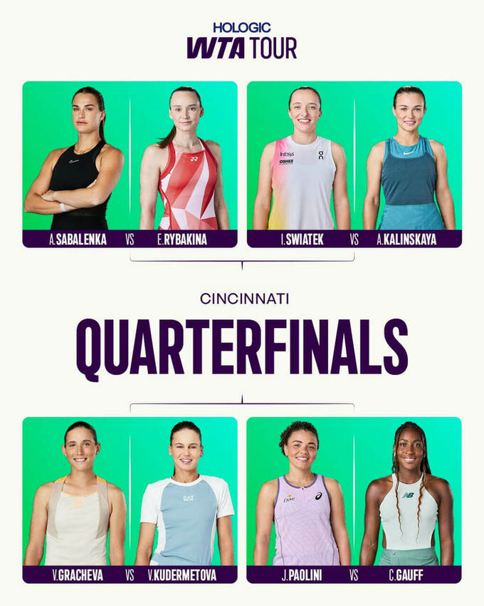 В ночь на 16 августа завершились все четвертьфинальные матчи на хардовом турнире WTA 1000 в Цинциннати, США.
