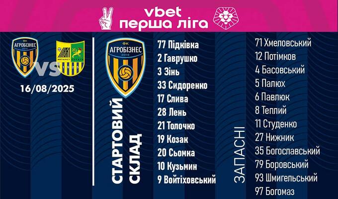 Первая лига. Агробизнес играет с Металлистом. Стартовые составы