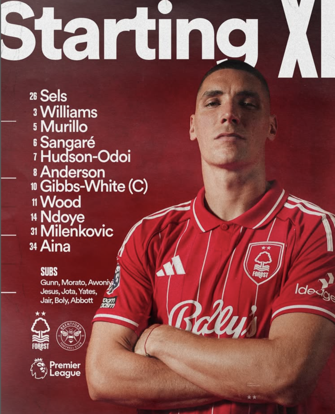 «Ноттингем»: Селс, Айна, Миленкович, Мурилло, Уильямс, Сангаре, Андерсон, Ндое, Гиббс-Вайт, Хадсон-Ондой, Вуд