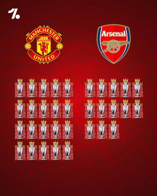По количеству титулов Премьер-лиги лидируют «красные дьяволы»: 20 против 13.