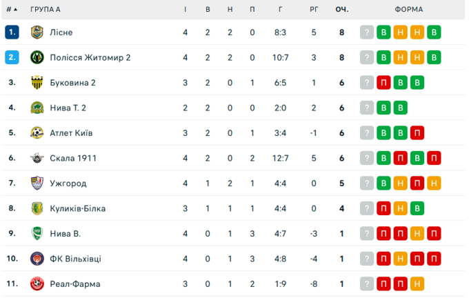 Вторая лига. Победы Ужгорода и Александрии-2. Результаты 4-го тура