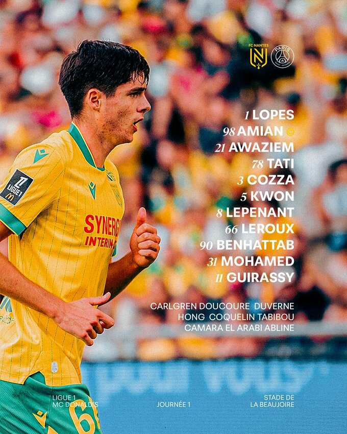 Нант: Лопес, Авиан, Авазим, Тати, Козза, Квон, Лепенан, Леруа, Бенаттаб, Мохамед, Гирасси