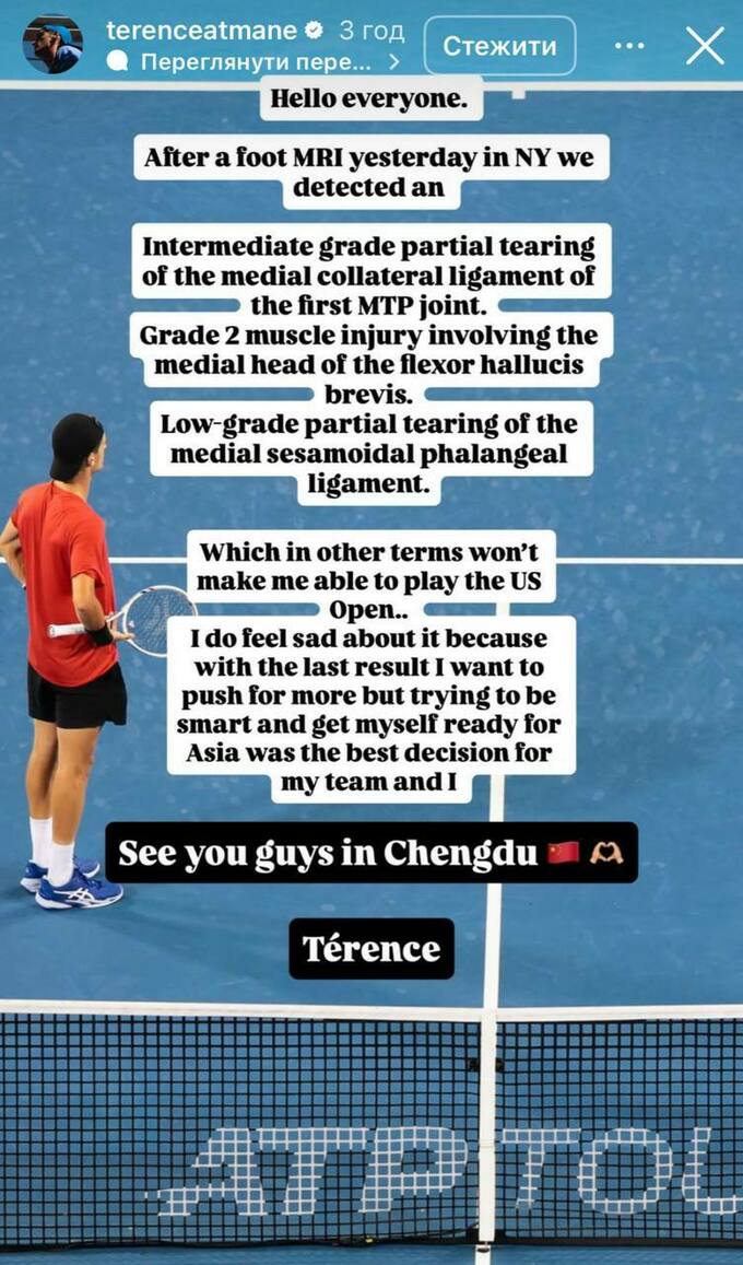 23-летний французский теннисист Теренс Атман (АТР 69) снялся с квалификации Открытого чемпионата США 2025.
