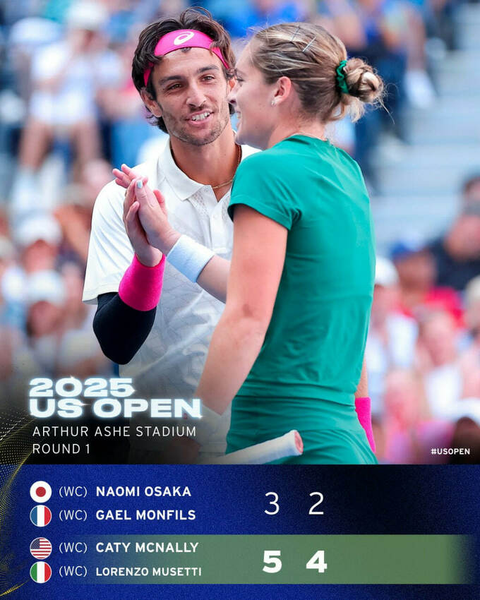 Наоми Осака (Япония) / Гаэль Монфис (Франция) – Кэти Макнелли (США) / Лоренцо Музетти (Италия) – 3:5, 2:4