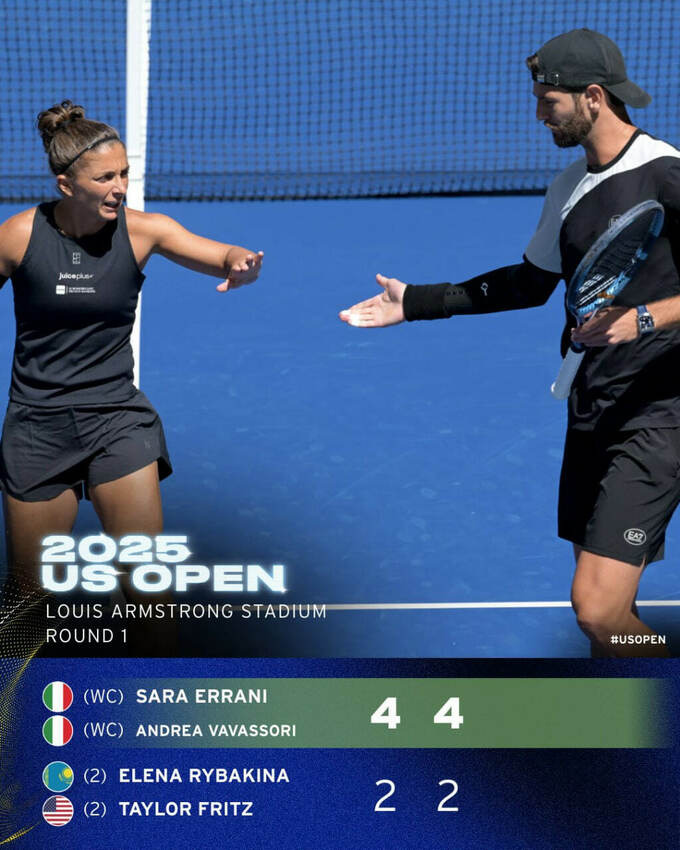 Также уже завершился еще один матч в миксте US Open: итальянцы Сара Эррани и Андреа Вавассори переиграли тандем Елена Рыбакина / Тейлор Фритц со счетом 4:2, 4:2. Далее Сара и Андреа – профильные парники – сыграет или с Винус Уильямс и Рейлли Опелкой, или с Каролиной Муховой и Андреем Рублевым.
