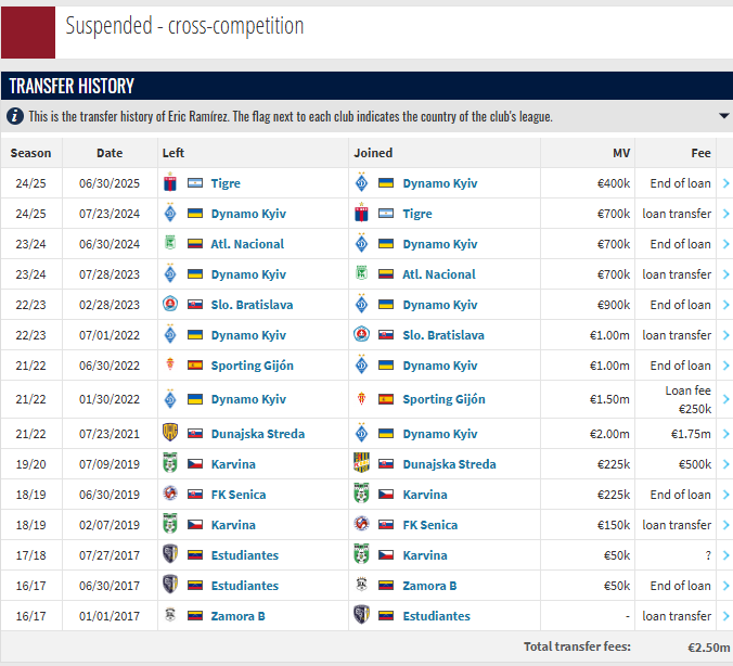 В СМИ не было никаких новостей о возможных дисквалификациях этих 3 футболистов, информация об этом указана только на Transfermarkt.
