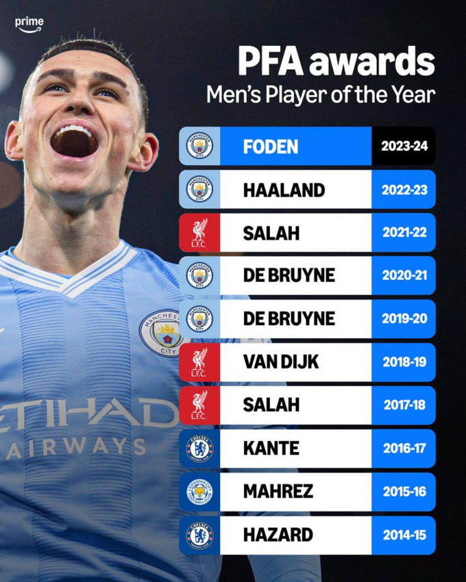 - 2023/24 – Фил Фоден (Манчестер Сити)
