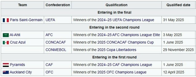 Участники: ПСЖ, Аль-Ахли, Крус Асуль, Пирамидс, Окленд Сити и победитель Кубка Либертадорес