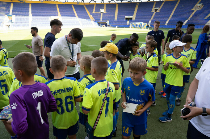 По завершении тренировки футболисты Металлиста 1925 уделили внимание всем воспитанникам клубной академии, оставили автографы на специально подготовленных карточках с игроками и никому не отказали в фотографии.