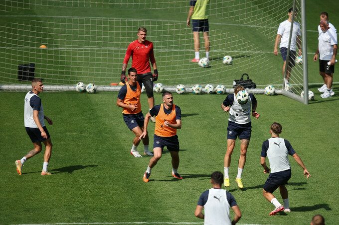 Сначала команда прибыла на стадион Металлист, где под пристальным взглядом не только тренерского штаба, но и воспитанников академии клуба, которые продолжают заниматься в Харькове, провела тренировочную сессию. Юные футболисты бурно реагировали на каждый гол, который забивали игроки в двусторонке, проведенной на полполя.