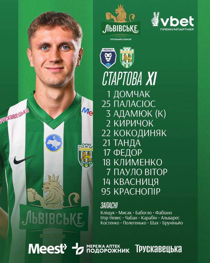 С первых минут в составе «Карпат» выйдут три игрока, которых выбрали фанаты «львов» перед матчем – Илья Квасница, Олег Федор и Диего Паласиос.