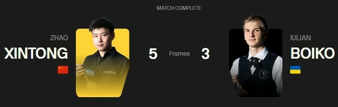 Соперником 19-летнего украинца был знаменитый 28-летний китаец Чжао Синьтун, чемпион мира 2025, 10-й номер мирового рейтинга, победитель 3 рейтинговых турниров.