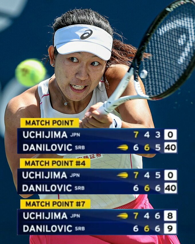 В третьей партии Утидзима отыграла семь матчболов: три на приеме в девятом гейме, три на подаче в 12-м гейме и один на супертай-брейке.