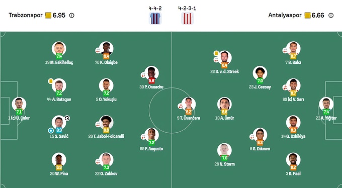 Оценки матча «Трабзонспор» – «Антальяспор» от SofaScore.
