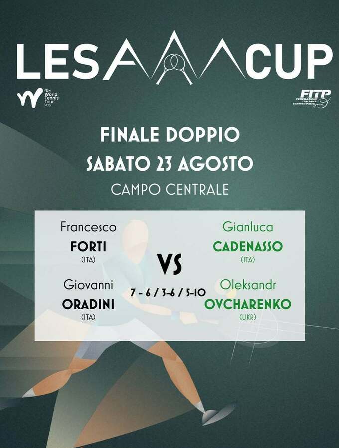 Джанлука Каденассо (Италия) / Александр Овчаренко (Украина) [1] – Франческо Форти (Италия) / Джовани Орадини (Италия) [3] – 6:7 (6:8), 6:3, [10:5]