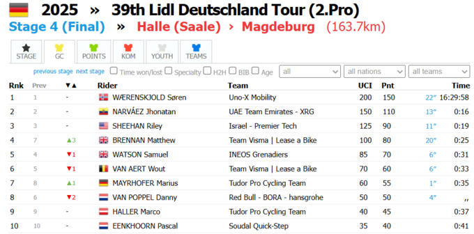 Renewi Tour 2025. Победителем велогонки стал Арно де Лье Тур Германии 2025. Генеральная классификация