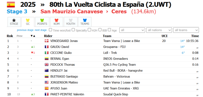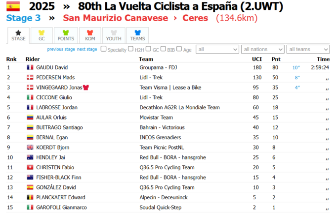 В понедельник, 25 августа, прошел третий этап шоссейного гранд-тура Вуэльта Испании 2025. Победу одержал представитель команды Groupama - FDJ Давид Году.