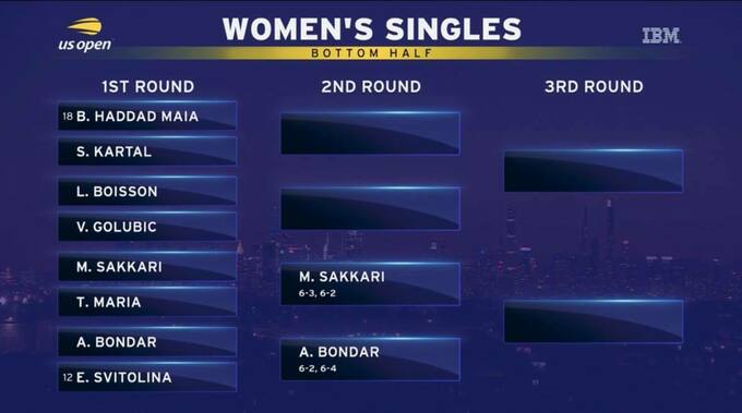 Следующей соперницей Бондар будет Мария Саккари из Греции, которая в 1/64 финала справилась с Татьяной Марией.
