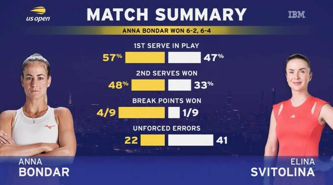 В первом раунде мейджора в Нью-Йорке Элина уступила Анне Бондар в двух сетах