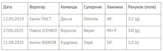 Это третий случай в Чемпионате УПЛ, начиная с сезона 2018/19 (с того момента доступна статистика Wyscout), когда вратарь становится автором ассиста. Причем второй – в 2025 году.
