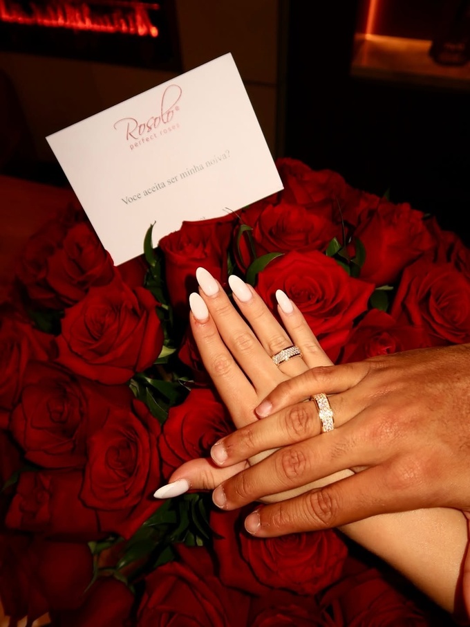 На снимке — букет, кольца и записка с предложением руки и сердца.