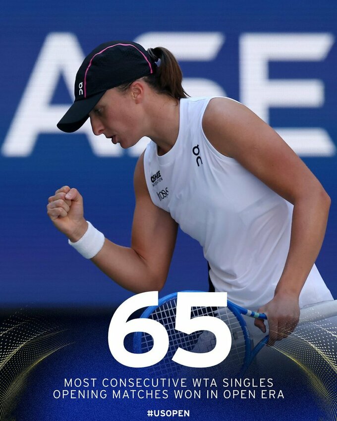 Ига добыла 65-ю победу подряд в стартовых матчах на уровне Тура, побив рекорд Моники Селеш по этому показателю.