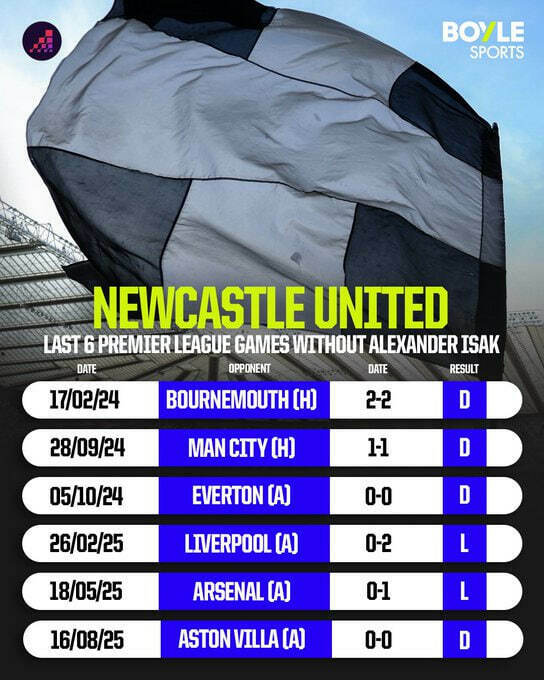 «Ньюкасл» в последних 7 матчах АПЛ без своего нападающего Александра Исака не одержал ни одной победы – 4 ничьи и 3 поражения.