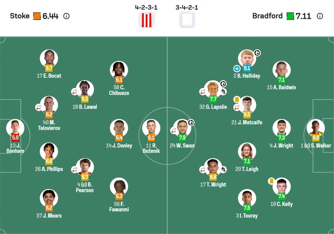 Оценка матча «Сток Сити» – «Брэдфорд» от SofaScore