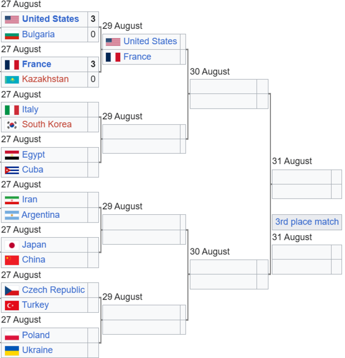 В четвертьфинале европейская команда ждет победителя пары США – Болгария.