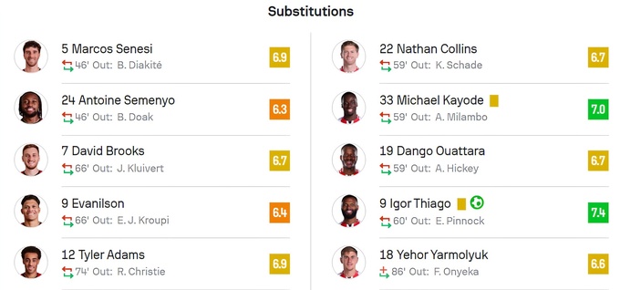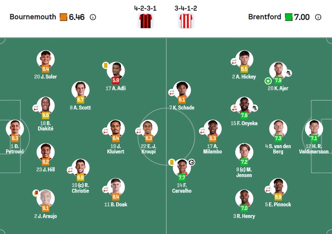 Оценки матча «Борнмут» – «Брентфорд» от SofaScore