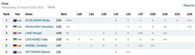 Никола Олислагерс с первой же попытки прыгнула на 2.04 м, это рекорд Австралии и Океании, лучший результат сезона в мире и личное наивысшее достижение.