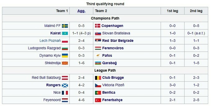 Бельгийский Брюгге разгромил шотландский Рейнджерс (6:0), а датский Копенгаген нанес поражение швейцарскому Базелю (2:0).