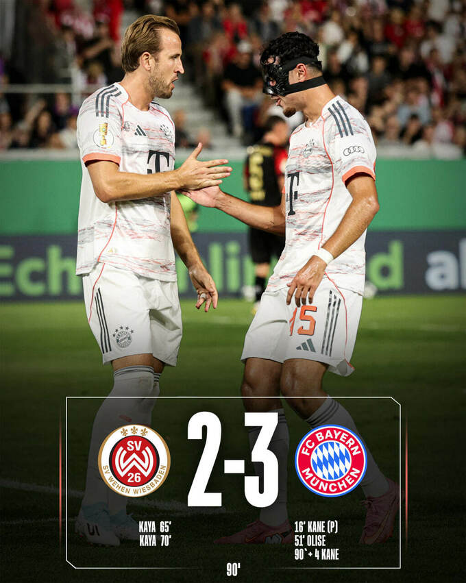 Голы: Кайя, 64, 69 – Кейн, 16 (пен.), 90+4, Олисе, 51
